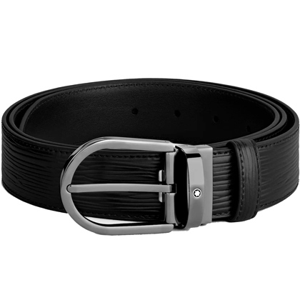 Черный кожаный ремень с подковообразной пряжкой 35мм от магазина премиальных ручек Premium Pens в Муроме.